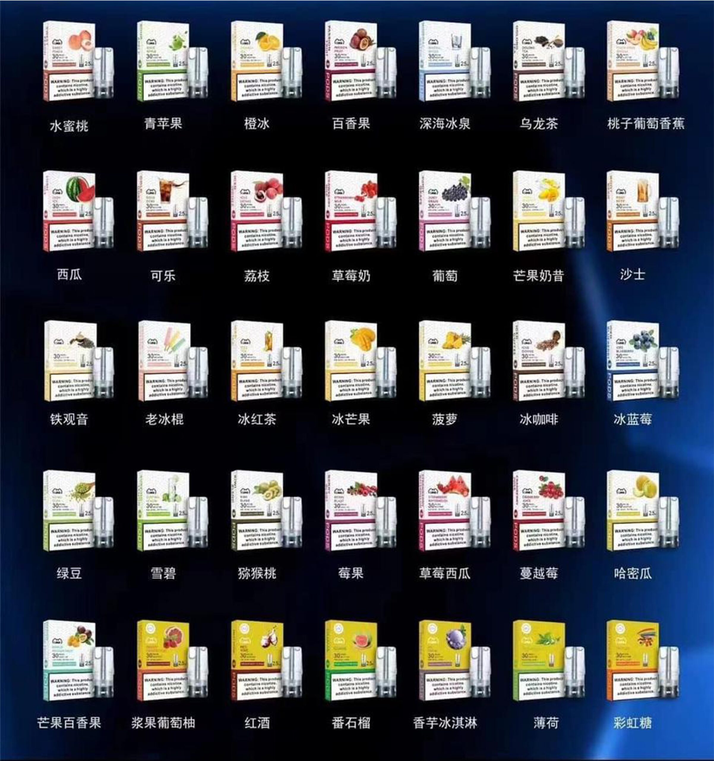 水蜜桃, 藍莓, 薄荷, 百香果, 葡萄, 芒果百香, 可樂, 老冰棍, 深海冰泉, 沙士, 紅茶, 雪碧, 草莓牛奶, 綠豆, 草莓西瓜, 蘋果, 芒果牛奶, 莓果, 龍井
